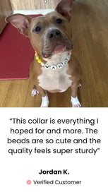 Our set is crafted from high-quality, durable materials that ensure comfort and longevity. The beads are safe for pets, and the collar fits snugly yet comfortably around your dog's neck, making it perfect for everyday wear.